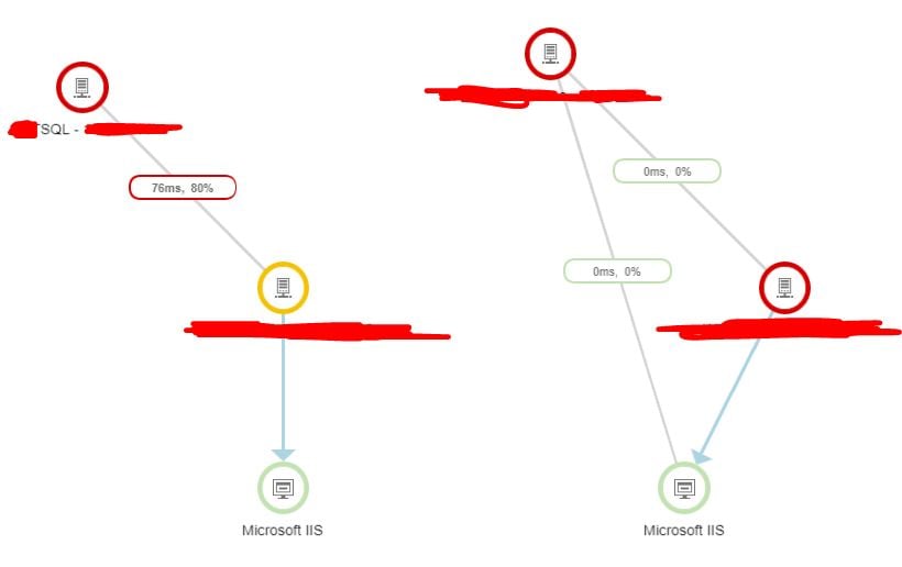 I don't why the Orion map could detect the connection between the MSSQL DB server with IIS (which is shown on the right-hand side), but not on another one (left-hand side).