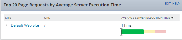 I would like to create a report that shows this for all of my IIS installations. I cannot for the life of me find it in the reporting. I can't find a stock report for it and I cannot find anything resembling "Page Requests by Avg Sever Execution Time" in the column list for a custom table either. The information has to be somewhere. Does anyone know where I can find it?