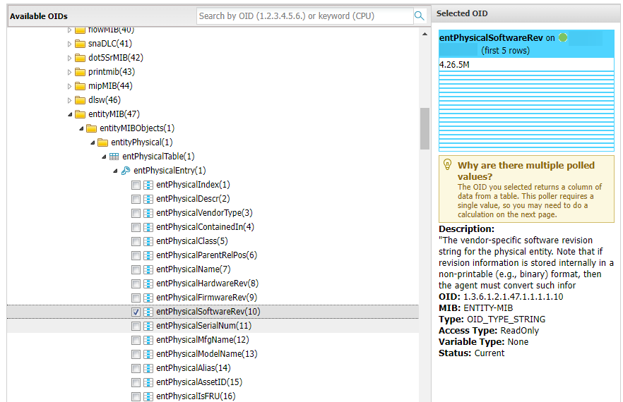 Hello! Has anyone had the OID for Software Version of "Arista Networks" and "Huawei Technology" Devices?