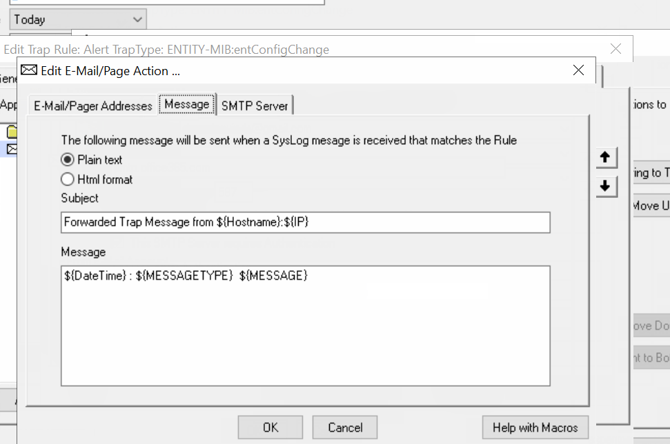 I'ved set trap rule to send an email on Trap viewer when configuration has changed or something went down.