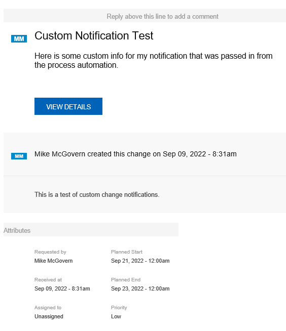 I am trying to send an email to the change requester to inform him that the change requested has been approved/denied. I would like to include some details in the email but {{change_info}} returns blank information.