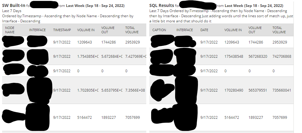 As you can see, none of the lines are showing Terabytes worth of data. So my question is... How the heck is Orion calculating the Volume/Total Traffic? Is the data in another table somewhere or what? The columns I used in the built in method are: