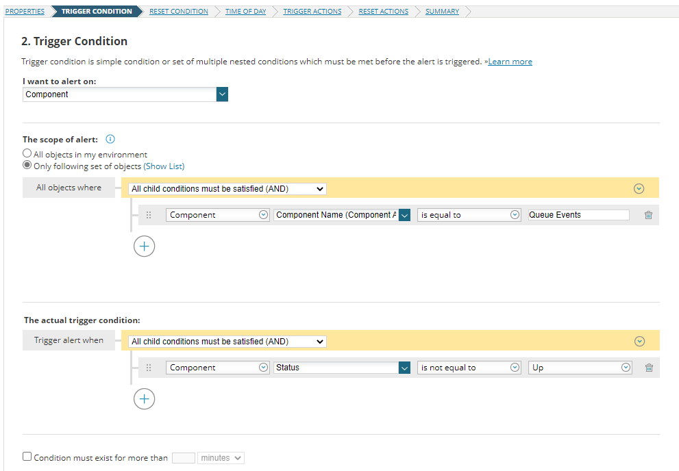 Under the Microsoft Message Queuing Events Template, I have set the Queue Events Statistic Threshold: