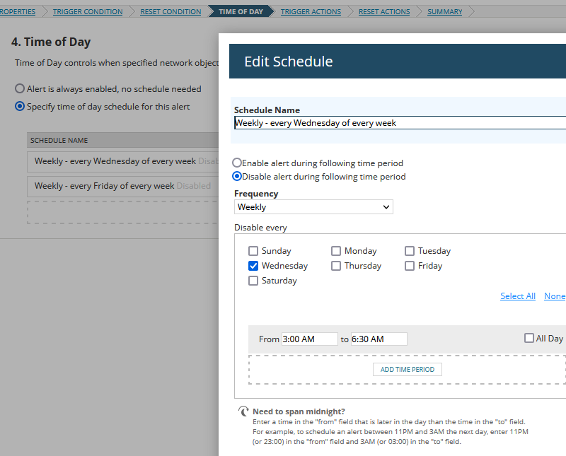 - We set up an alert to monitor SQL processes on a database server and we add a maintenance window for 2:00 AM to 3:00 AM each day.