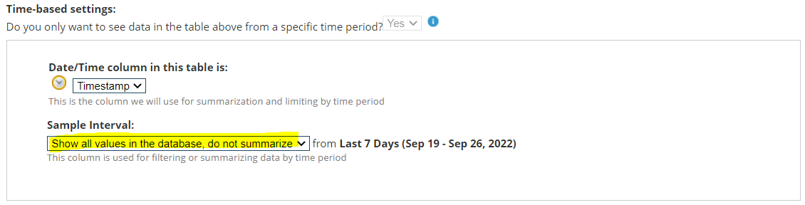 I have tried to change the sample interval to "show all values in database, do not summarize" from last 7 days and it did produce one record for each interface which was correct based on my review of some usage graphs. The report no longer runs and only produces an error at this point.