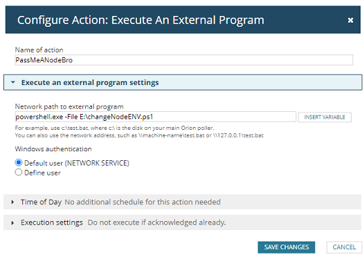 When I have the Alert Trigger Aciton run the script, it will not successfully run the "Connect-SWIS" command. It returns a null in the $swis variable every time it runs.