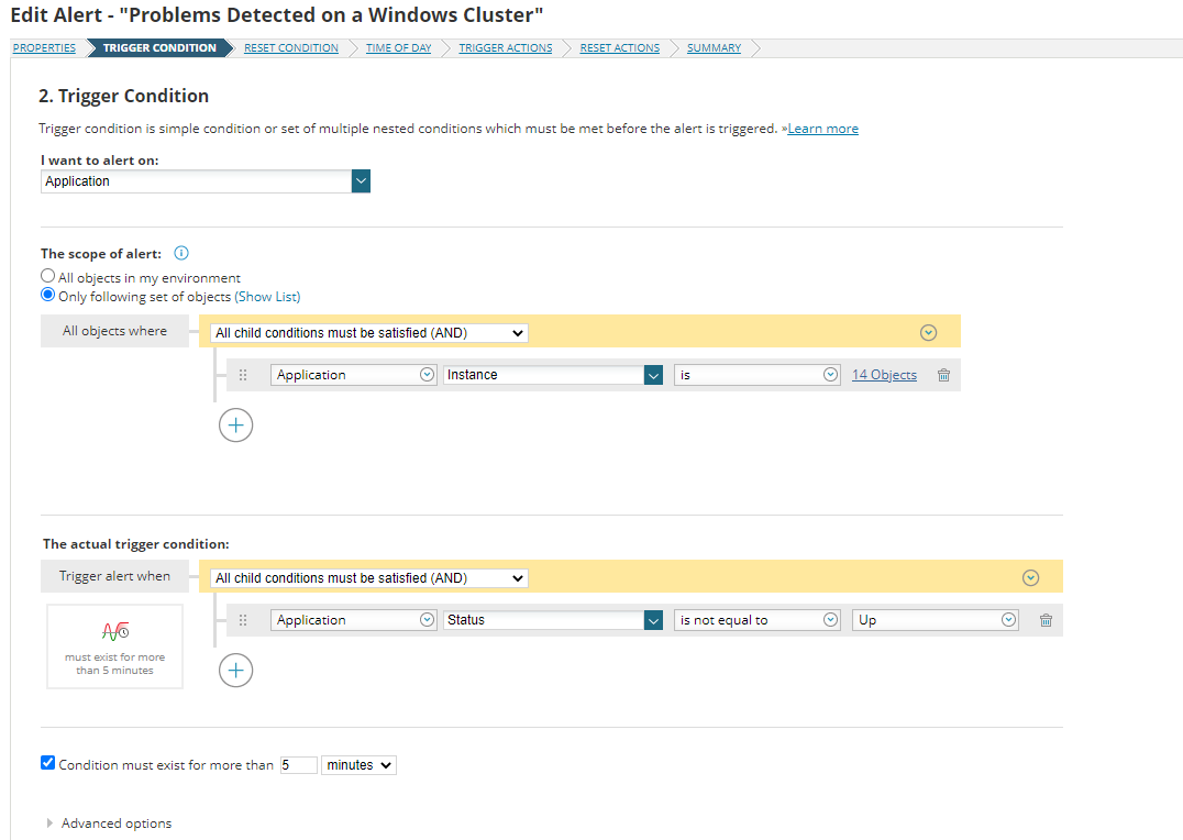 I am creating an alert based on the health of a Windows Cluster SAM Template. I need some help on properly scoping the objects the alert will trigger from. The settings in my screenshot below will work, but my problem is what if I assign the template to new nodes? I want the alert to automatically apply to any node the template is assigned to. In my configuration below, it looks like I will have to manually add the object into the alert scoping in order for it to alert on it every time I add a new one.