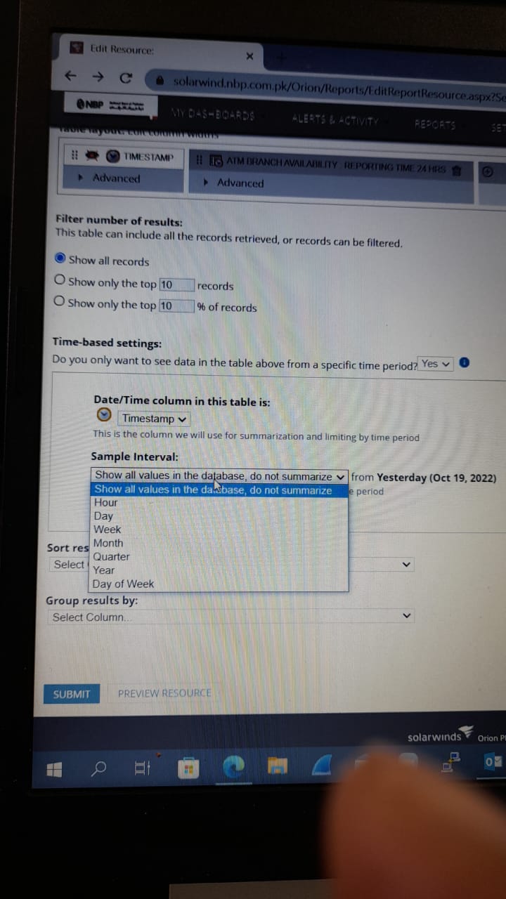 is there any way to put same sampling interval in chart and table format report as per my finding it may be due to sampling input differ (as attached below ) else other parameters are identical.