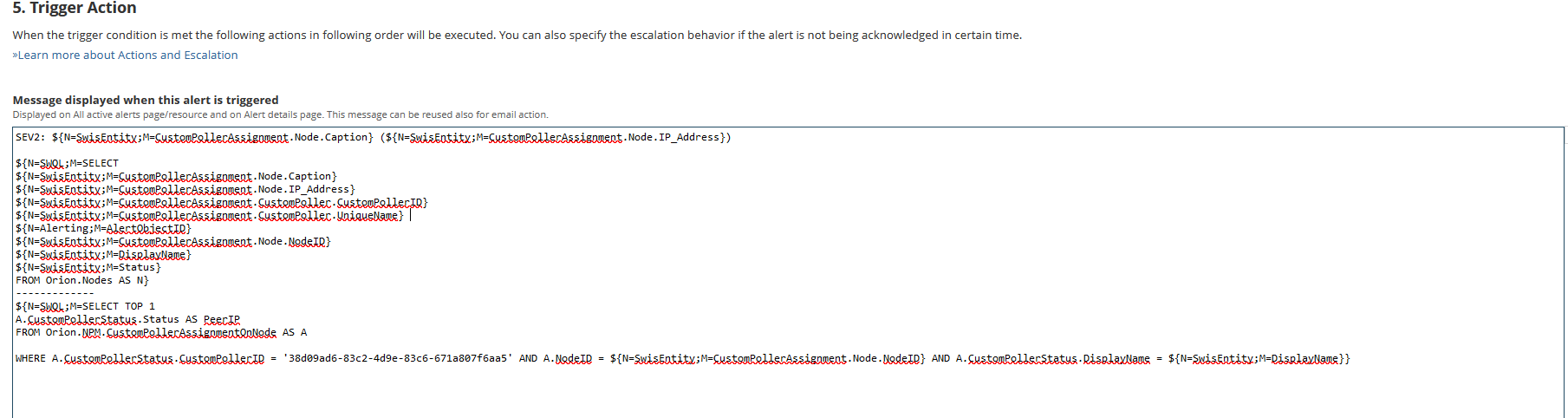 Here's the SWQL query for the alert trigger. This part works fine its the message part I'm confused about.