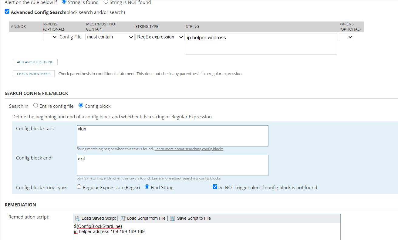 I am looking to add additional statement in the config wherever "ip helper-address" is present in the config.