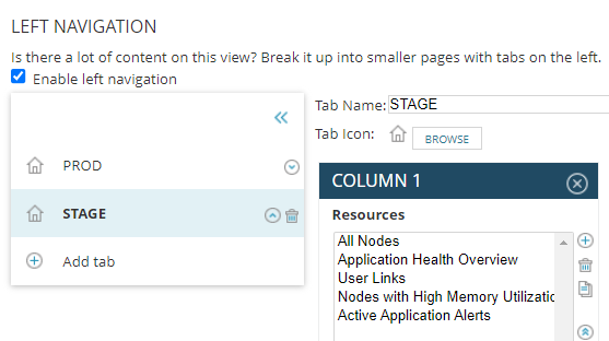 I have a Summary view with two tabs on the left, one called PROD and STAGE