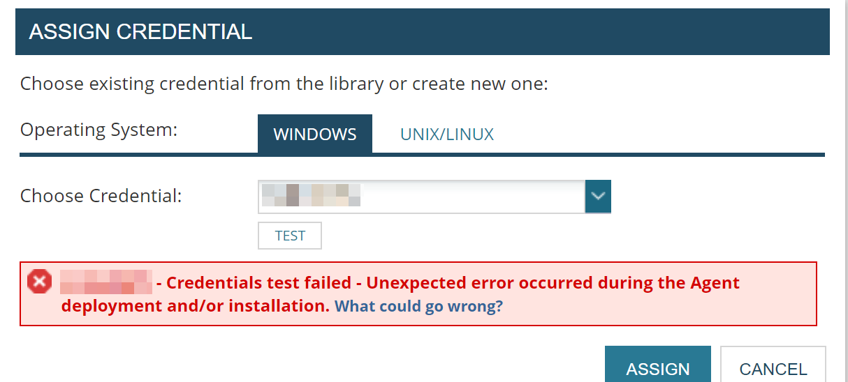 We're having an issue that several servers have had their agents fail. I am trying to re-install the agents via SolarWinds, however, the following error occurs: