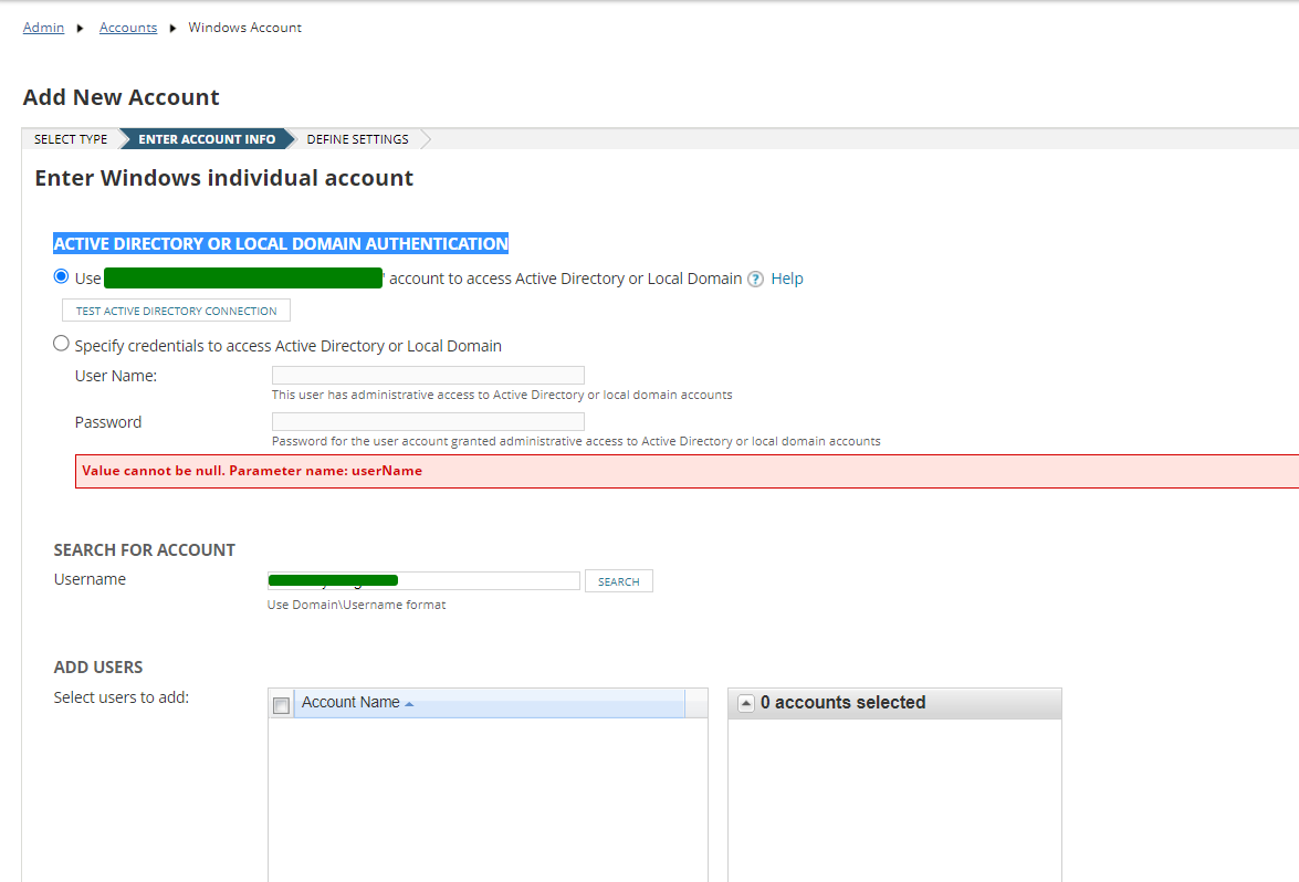 I cannot use windows ACTIVE DIRECTORY OR LOCAL DOMAIN AUTHENTICATION even though Solarwinds windows LDAP is connected. I'm getting an error like this, have you encountered it before?