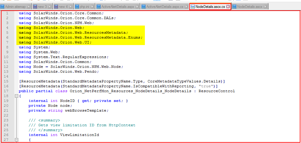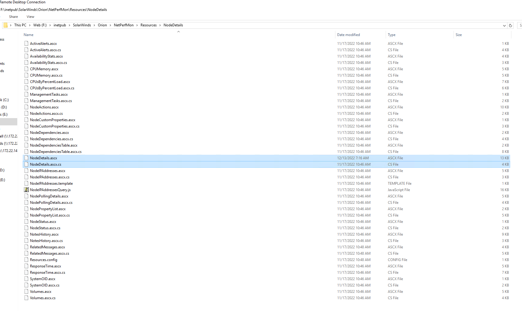 Now that we have the name and location of the file, we can head there and see what we can see. Once we are in the correct folder, we can see 2 "NodeDetails" files, an "ascx" file and a "cs" file.
