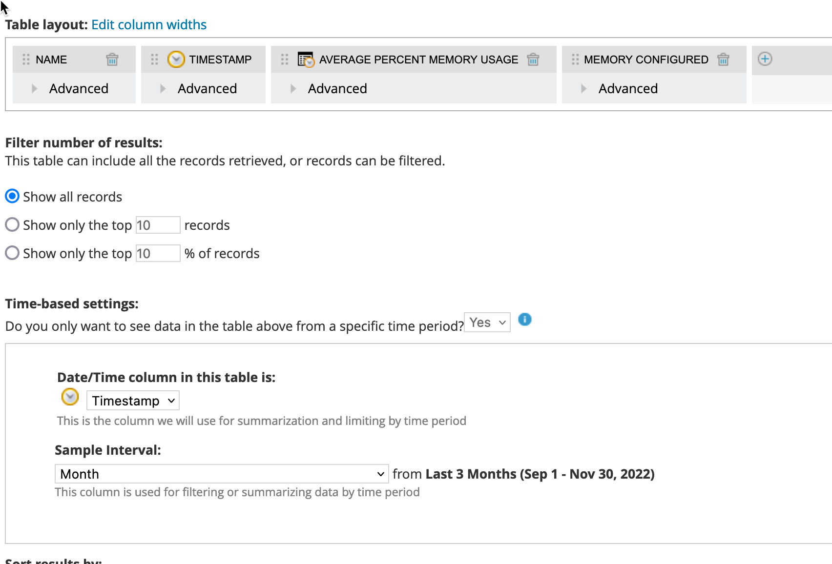 I am trying to create a memory usage report to try and identify VMs in which have overallocated memory based on a 3 month average memory usage and current memory configured. Below is a screenshot of my layout. Is there a better way to build out the layout?