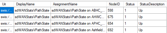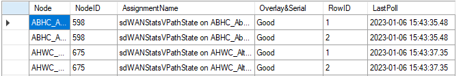 WHERE AssignmentName LIKE 'sdWANStatsvPathState%' AND RowID = '1'