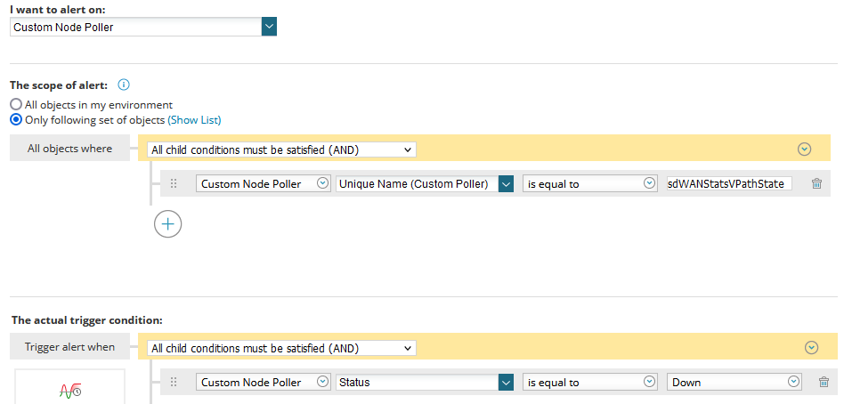 Within NPM, we have some Network Hardware which SolarWinds doesn’t poll the VPN status’s within the usual ‘List Resources’ option. After creating some Custom Pollers, I now have the data I need and I have been able to create an alert which references the Custom Poller data (e.g. VPN status = Down).