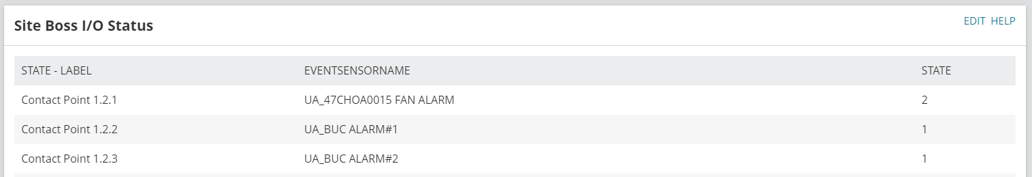 So, my company uses an RTU which collects binary inputs from multiple devices connected to it and uses that to signify when the connected systems are in alarm. When their binary state changes it triggers a preset alarm. The following is the custom Poller table on the node which contains the alarms and which physical I/O ports they're related to.