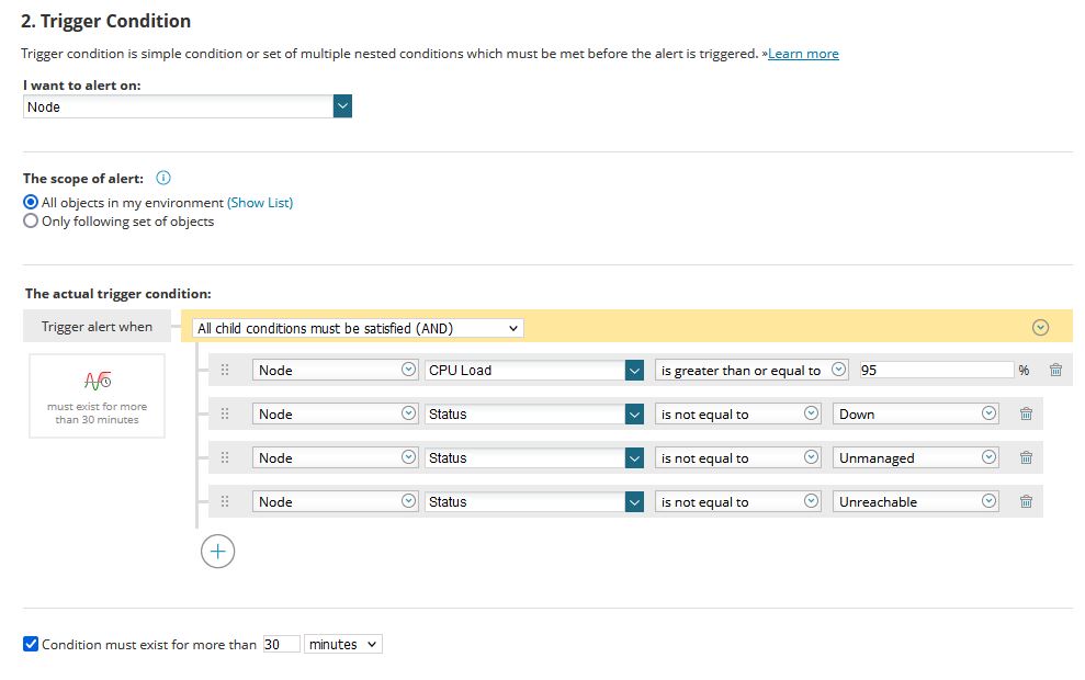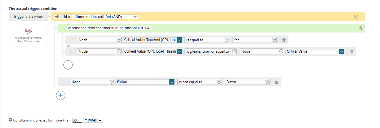 But I wan't to know how to configure the alert to only tell me if a processor is at 95% for a certain time, say 30 minutes..etc.