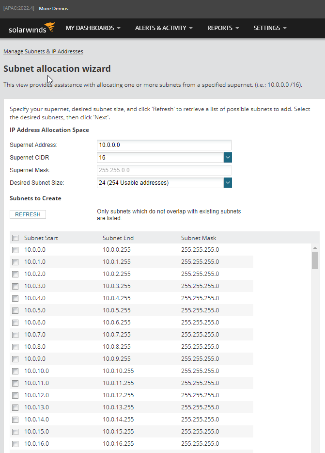 @gregthompson Here in the above example supernet 10.35.0.0/16 - if we add this in the subnet allocation wizard will the below mentioned subnet 10.35.0.0/22 - 10.35.84.0/22 will this be autopopulated?