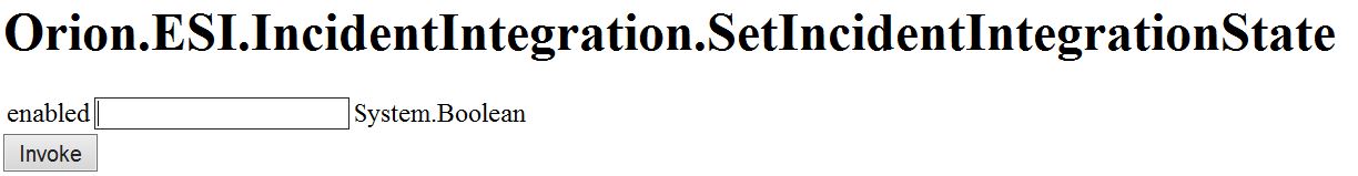 You can use SolarWinds API for this purpose. I didn't have an instance to try it but you should be able to enable or disable incident integration using "SetIncidentIntegrationState" verb on "Orion.ESI.IncidentIntegration" entity. I see that it expects true/false value only to enable or disable the integration: