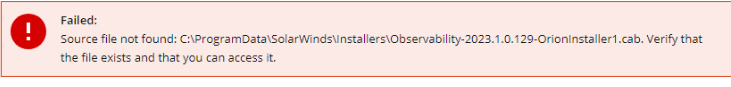 I am trying to setup a new dev instance in e:\program files\solarwinds. The main install seems to run fine, yes it included a sql express too. It is looking for files in the programdata directory. I have noticed that this folder is generally used for lots of stuff, even when you install in the non-default locations. So this is not a shock. The issue is - this file exists in the folder. I tried retry once already - no luck. Anyone else run into this?