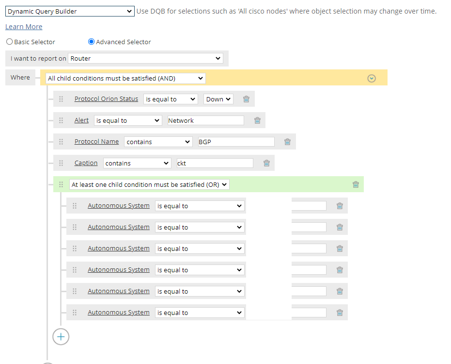 I tried using the builder to make this but it doesn't work, it returns 0 results when we know we have down bgp neighbors. I think because it can't join these tables for some reason or can't find a link between the two?. We are trying to key off the interface caption/alias/description as it has our mpls circuit info in there and we use "ckt" as a key to pull from.