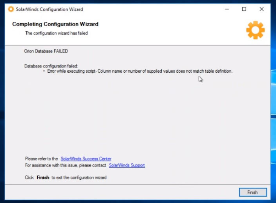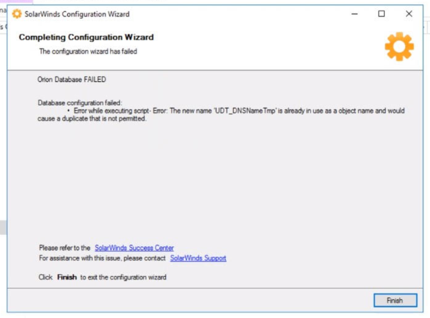 Yesterday we did an offline update of the orion from version 2020.2.6 to 2022.4.1. The installation was going well until we got to part of the configuration wizard where we got the following error