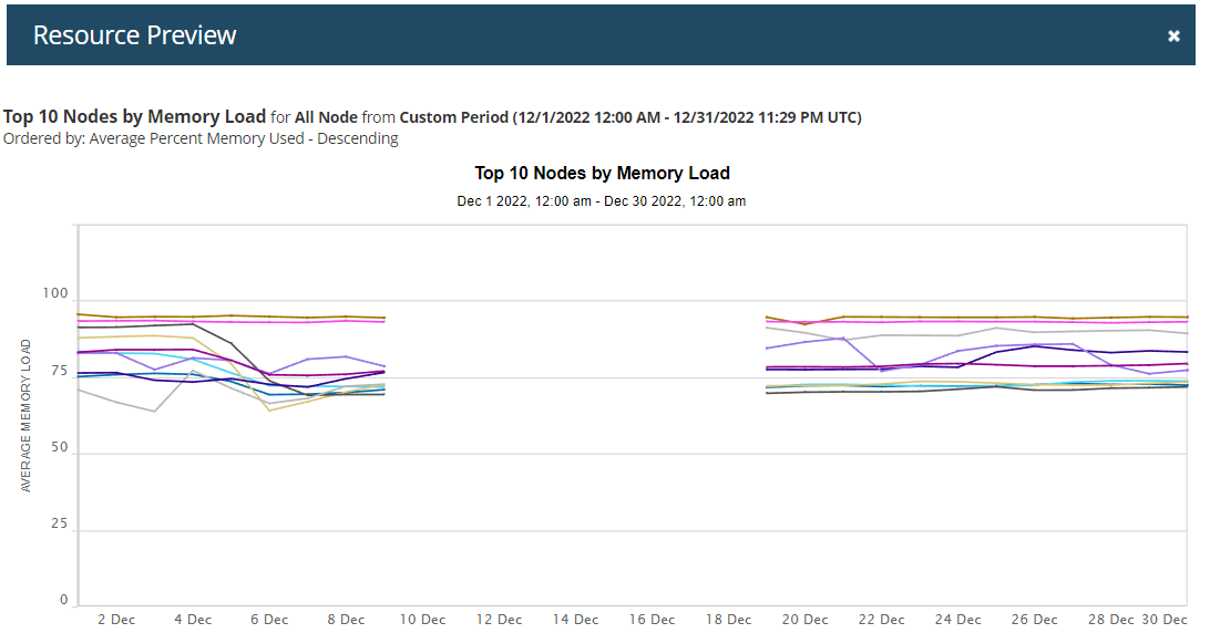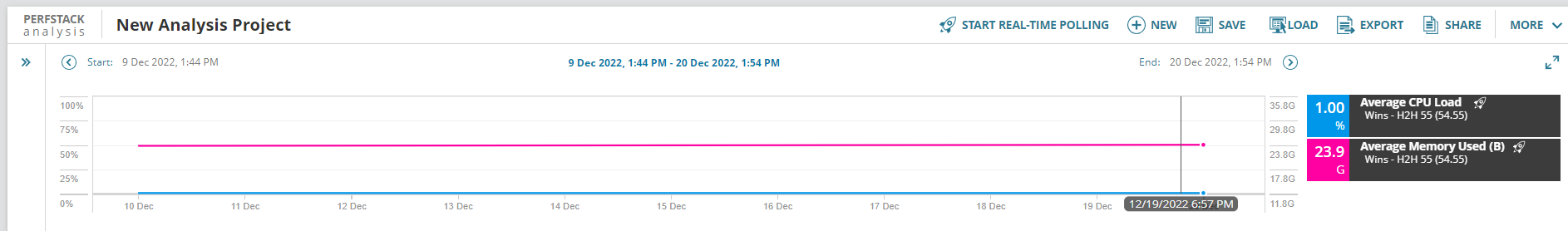 If we look at the condition of the servers that are included in the report through the perfstack analyst, the servers are running normally from December 9 to December 19.