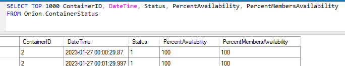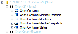 And if I now run a query against just Orion.Container it gives me much more data to begin to understand. In this case, the ContainerID is the DB representation of a group name we have created in our deployment.