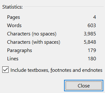 Actual Word Count of Values Array as per Microsoft Word: