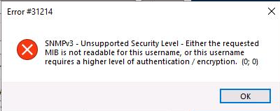 However, there are about a dozen OID entries that start with 1.3.6.1.6 . The Unsupported Security Level error occurs when attempting to poll these OIDs.