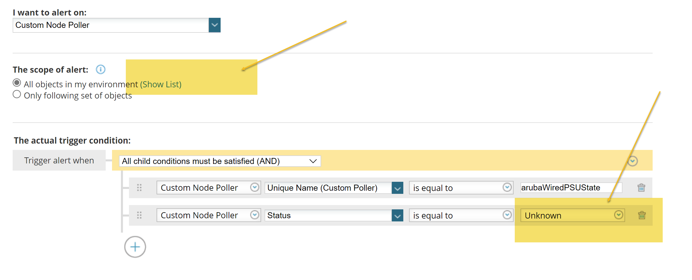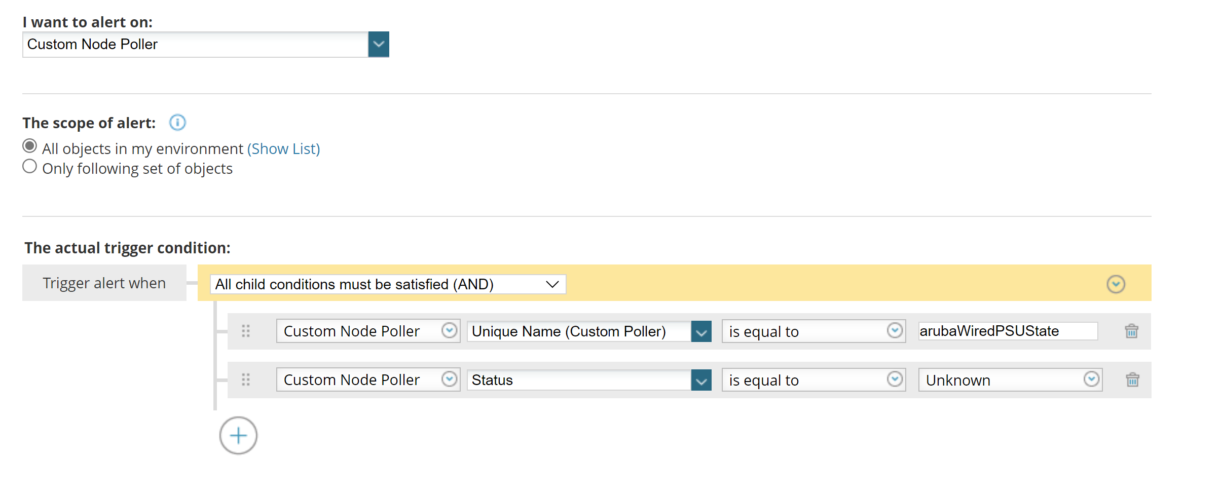 The logic I want is from my custom poller if the ARUBAWIREDPSUSTATE = fault_input I want to create a polled alert rather than relying on the traps I set up, help appreciated on this bit as it’s the only part I cannot work out.