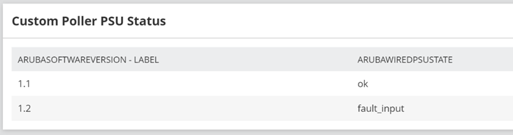 I then created a custom poller based on the OID 1.3.6.1.4.1.47196.4.1.1.3.11.2.1.1.4 which shows ARUBAWIREDPSUSTATE I do see the error value against the secondary power supply.