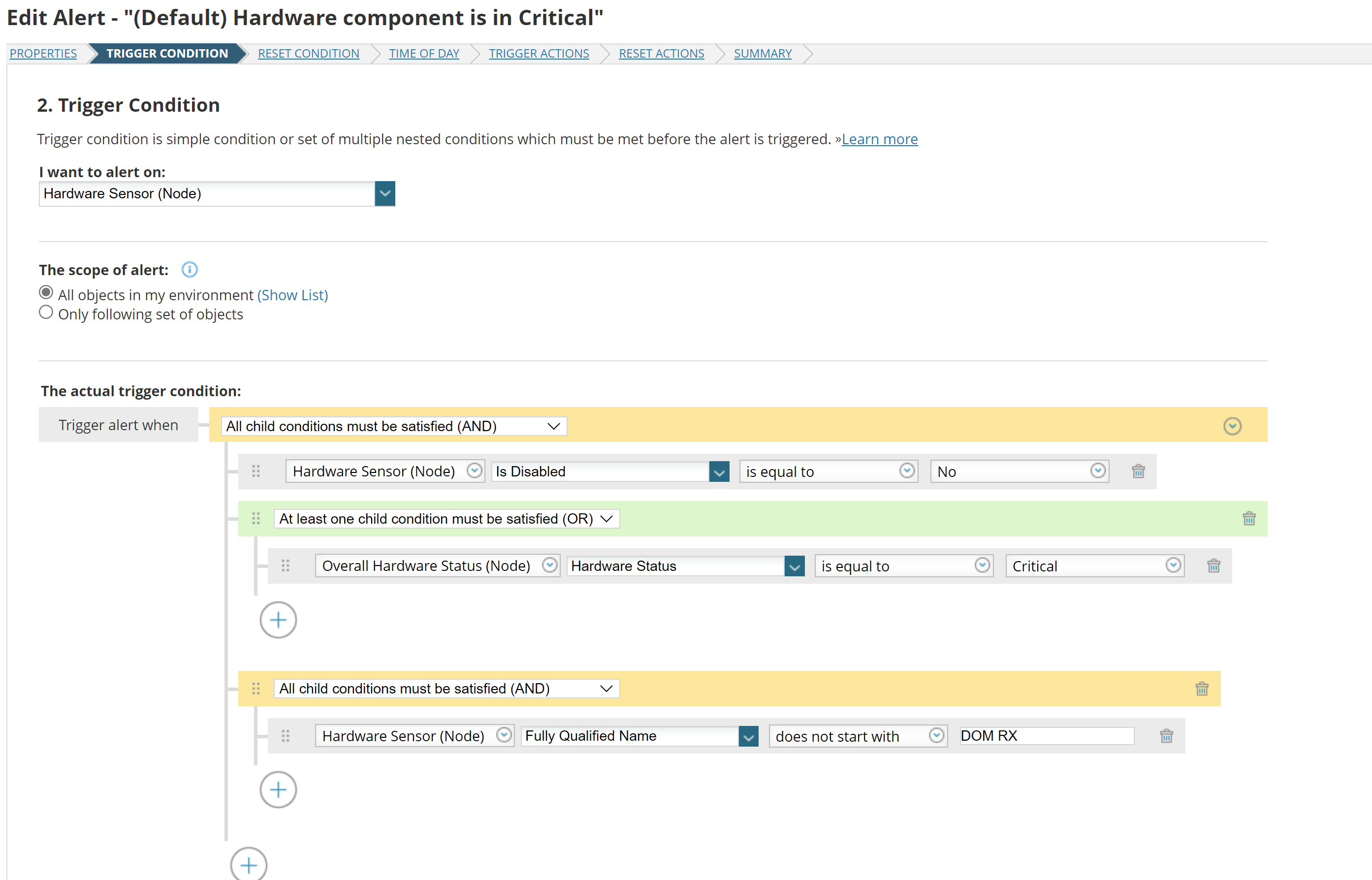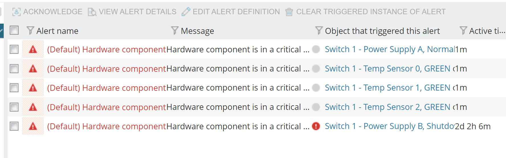 Its obviously my alert logic and probably a simple fix but I have an issue with Arista devices so I am excluding a known issue (DOM RX) but when any component goes into critical it reports the critical component alongside all the other managed components for that device see screen grabs below.