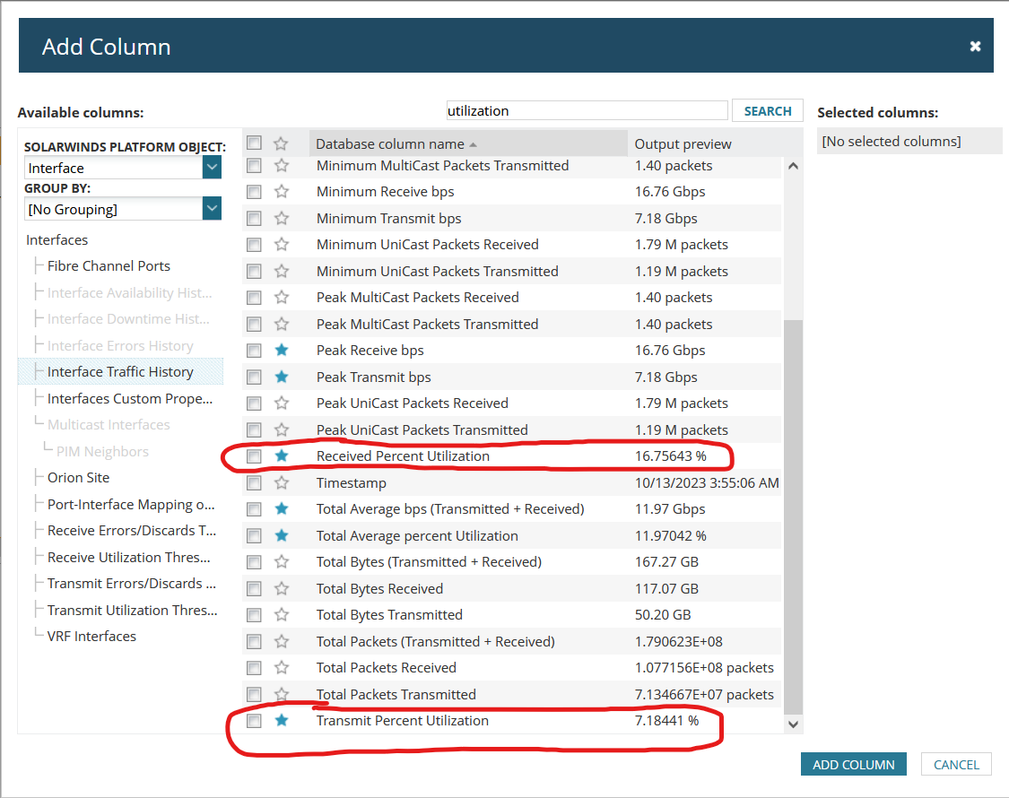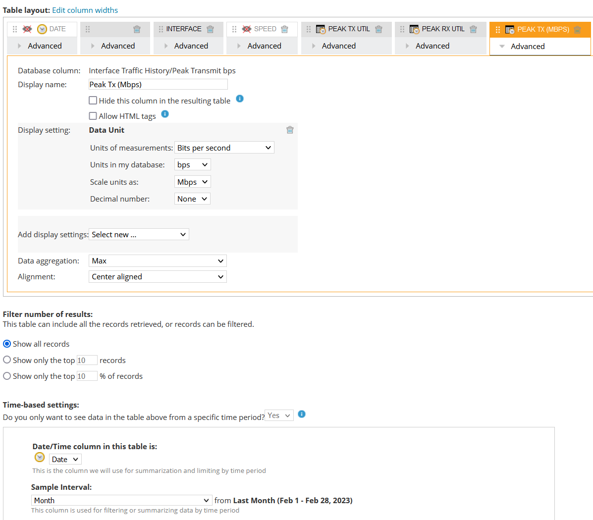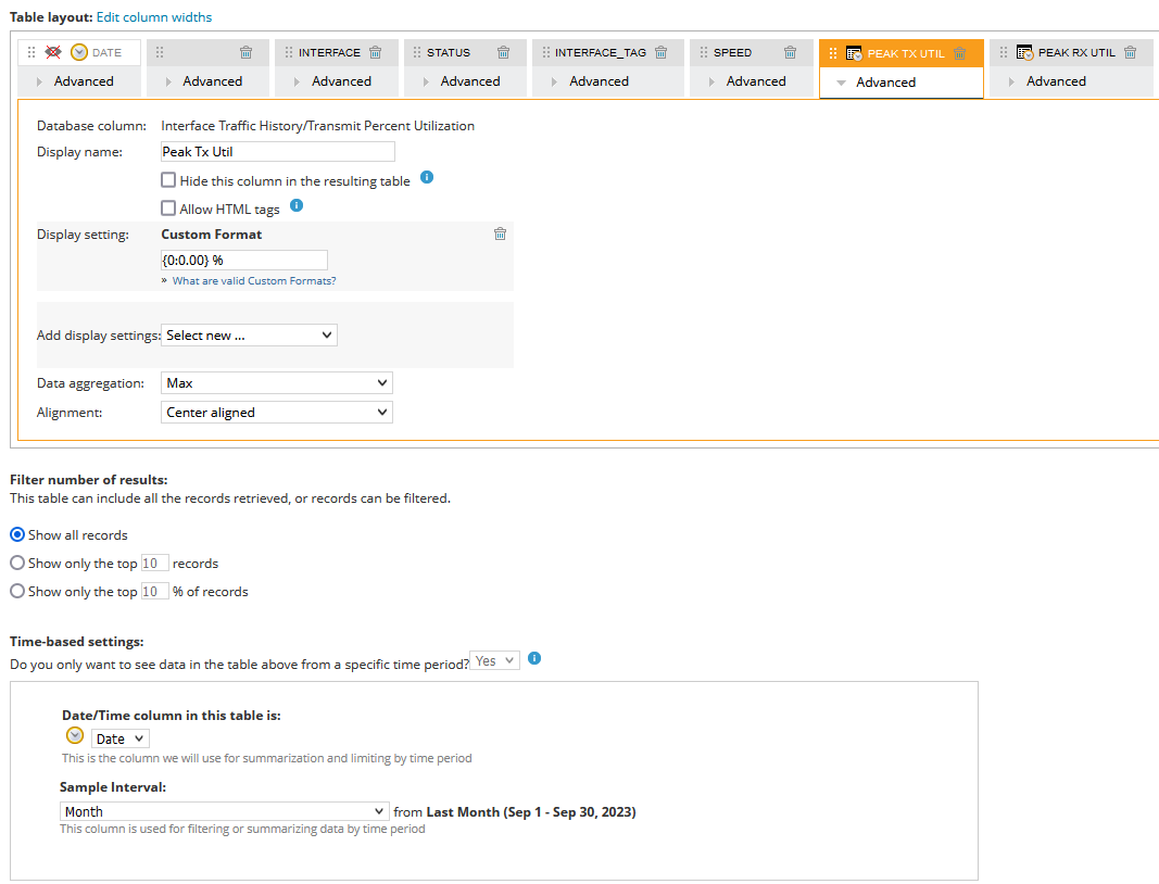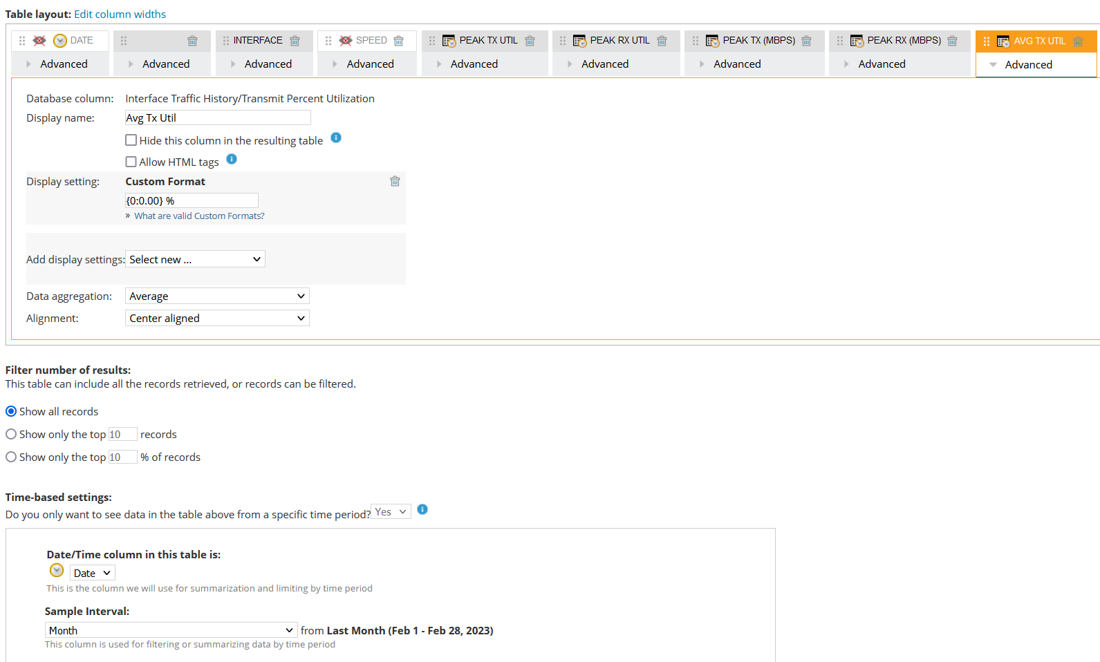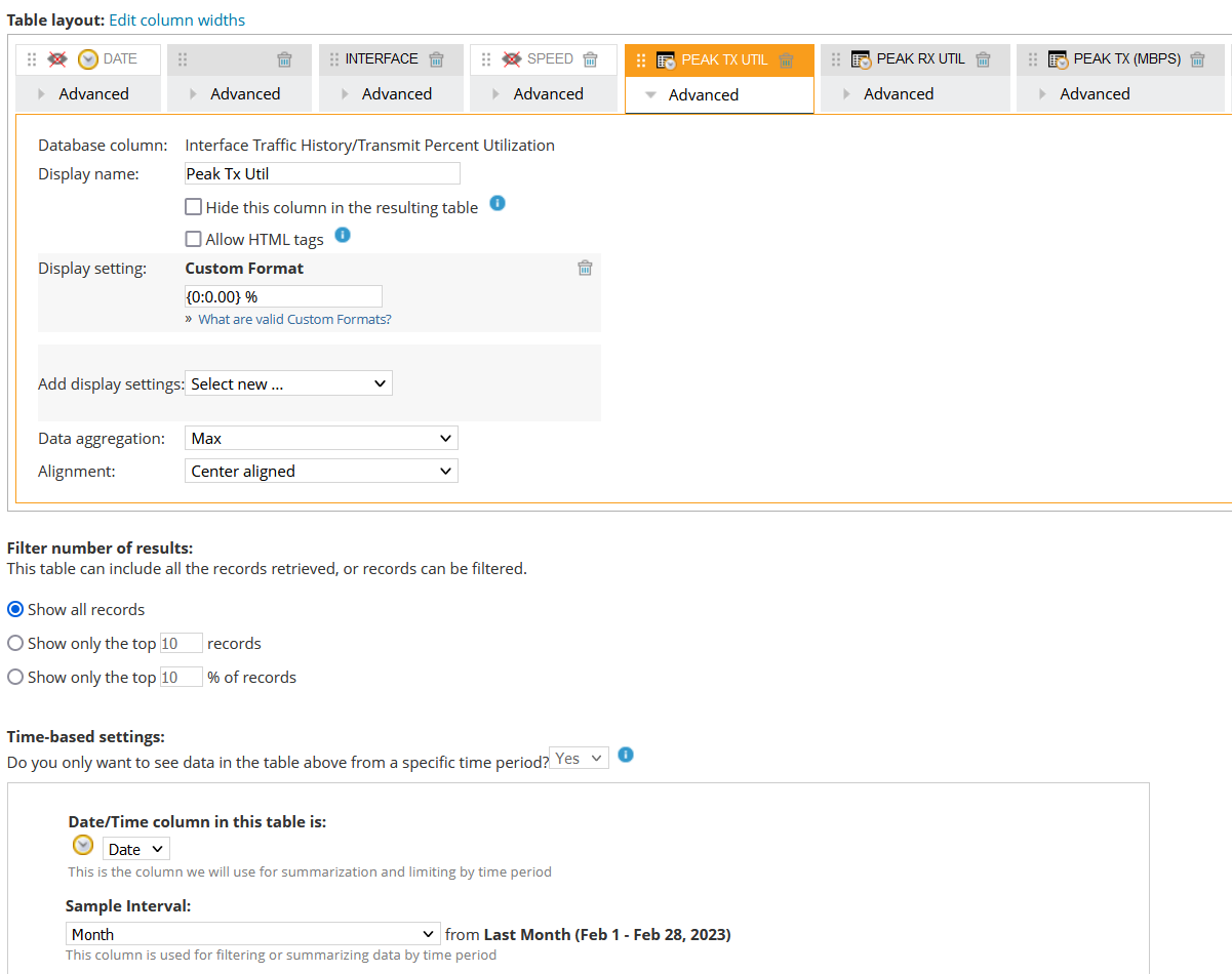 I am new to creating reports in SolarWinds/Orion, and I'm struggling with getting accurate percentages for the peak transmit/receive utilization stats on my interfaces. I have been unable to find any solutions while searching online and I'm hoping someone more experienced knows what I'm doing wrong.
