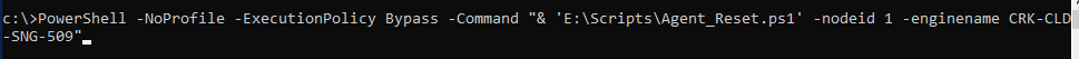 PowerShell -NoProfile -ExecutionPolicy Bypass -Command "& 'E:\Scripts\Agent_Reset.ps1' -nodeid {N=SwisEntity;M=Node.NodeID} -enginename ${N=SwisEntity;M=Node.CustomProperties.PreferredPoller}"