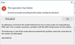 the operation has failed , An attempt to collect the cluster failed due to one or more nodes not responding to wmi calls, attached the error screenshot, once rebooted the issue resolved but again its occuriing , i had to remove these from solarwinds ,