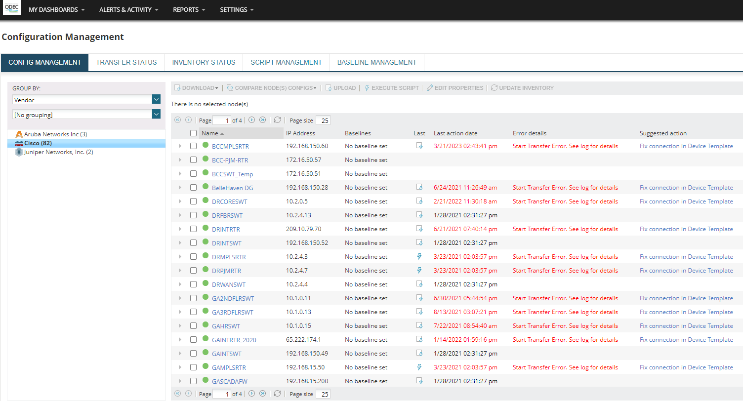 We are currently not able to use our Solarwinds NCM due to the issues in Red below: