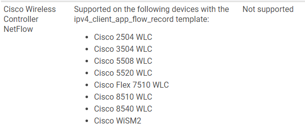 Hello all. We're running 2023.1.0 and I've recently pointed all my Netflow from a 5520 to NTA. I can confirm the flows are getting to NTA however the WLC interfaces discovered under NPM are not showing up in NTA. I'm also not seeing any data at the WLC Node level - AVC is enabled on each WLAN and the monitor was applied. I'm hoping someone might hep me understand what I could be missing here. I would greatly appreciate it.