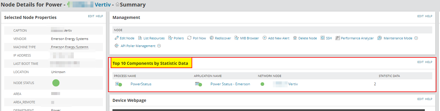 @dkos, I should rephrase my question, as the answer will lead you down different paths. In my example, I am actually using SAM to pull the SNMP values, as we don't really need anything more than the basics. If you use SAM to poll SNMP values, you can simply add a resource to display the components/statistics data on the node details page.