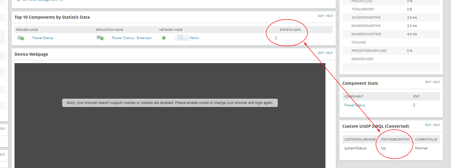 SELECTCustomPollerName,StatusDescription,CurrentValueFROM Orion.NPM.CustomPollerAssignmentWHERE NodeID=${NodeID}