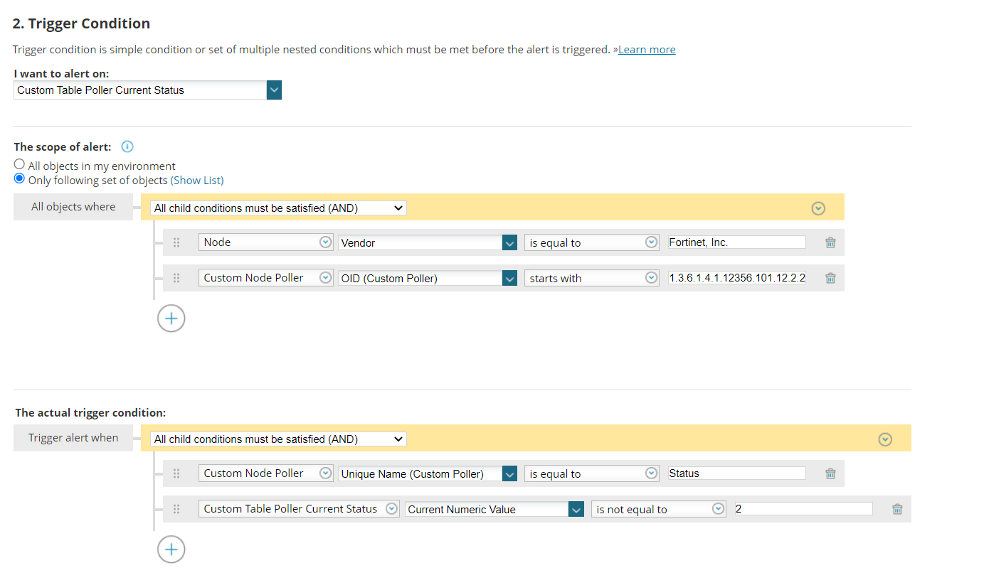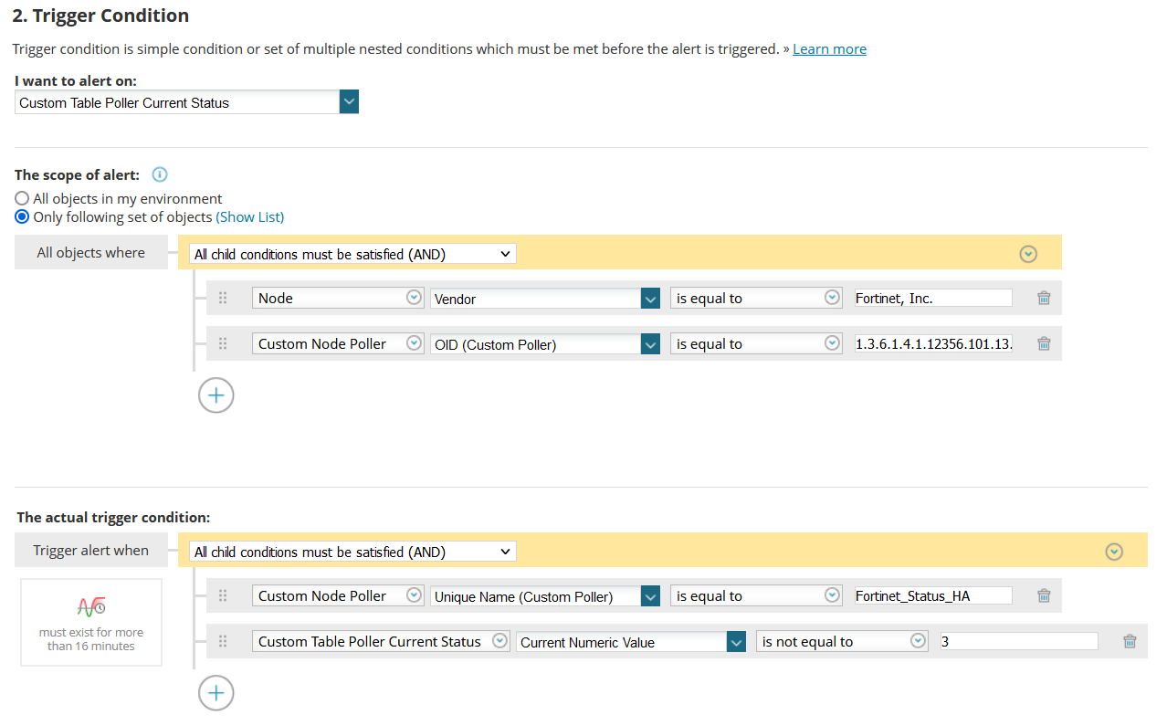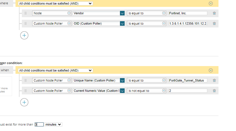 Hello everyone,I am monitoring the status of the VPN tunnel in the fortinet firewalls with OIDs and I want to generate an alert that tells me when one is down.