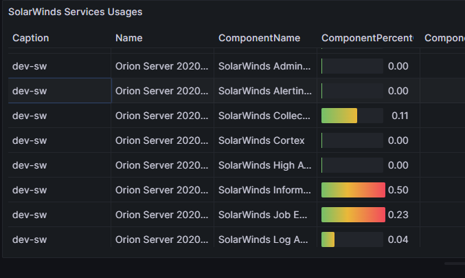 I'm looking to build a widget (and possibly report) showing resource usage for the Solarwinds services on each polling server.