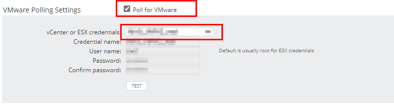 If we do it manually, we first add the node as an ICMP host. Then we check 'Poll for VMware' and select the credentials.
