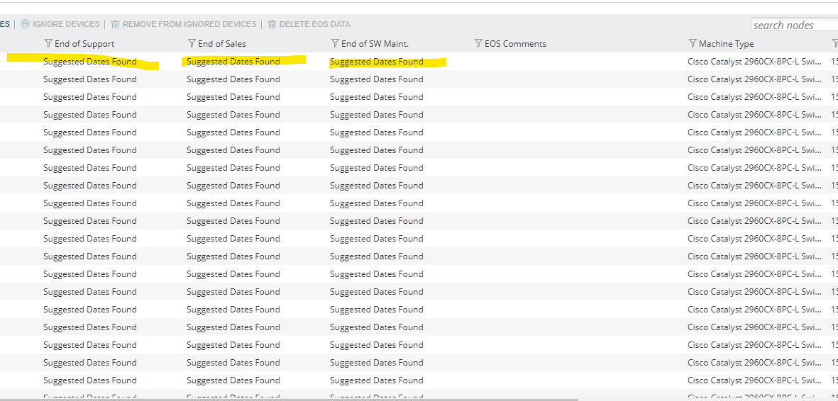 Currently on our EOL/EOS listing, most of our devices just say "Suggested Dates Found", but does not list the date? Does anyone know what we need to do to get the dates to show?