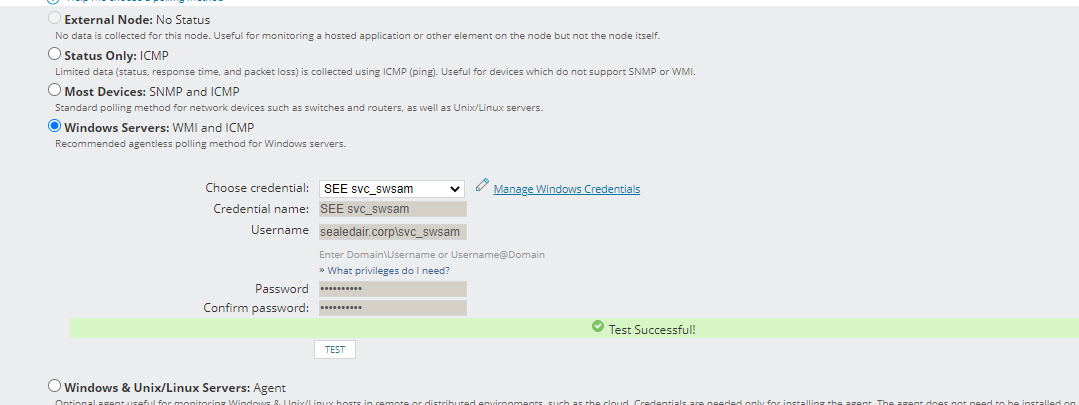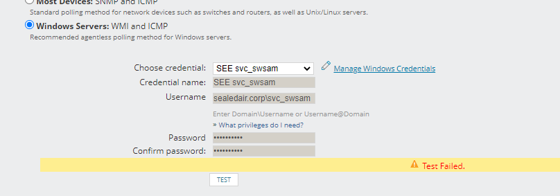 Hey all, first time posting here, let me know if you need any other information(or if there's too much, I honestly don't know). Little background - I manage an enterprise SW implementation with around 2k server nodes, mostly Windows that are polled via WMI in SAM. Version is 2020.2.6 HF2. All of our SW environment was on Windows Server 2012 until last week. We have a primary poller and 3 APEs, along with a web server and SQL server. Due to being on the outdated version, we're trying to upgrade and SW support told us to upgrade off 2012 first as that's no longer supported by SW. Last week we updated all of our servers (all on prem) to Windows Server 2019 and after the upgrade we're seeing that on the APEs about half the nodes are showing the NIC either grey or not there anymore in Node Management and they can't connect to the APEs at all, but they can connect to the primary polling engine. The rest are connecting to the APE without issue. I've been troubleshooting the last few days trying to figure out the issue, SW support suggested it's a WMI issue on the servers the APEs are on, which to me, that tracks, but unsure why only half the nodes are experiencing issues.
