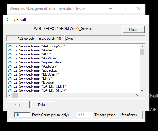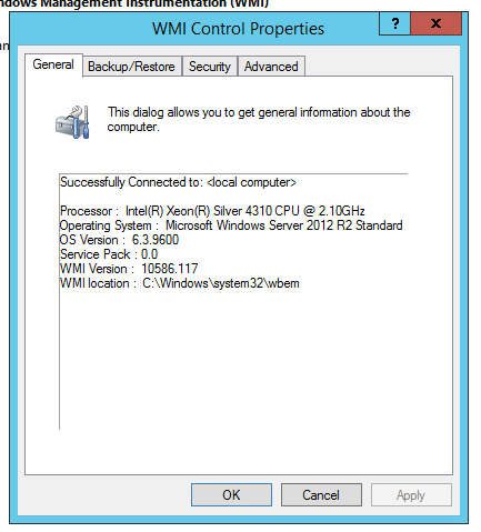 If I check the WMI service on the example server that is failing above, it's up and working: