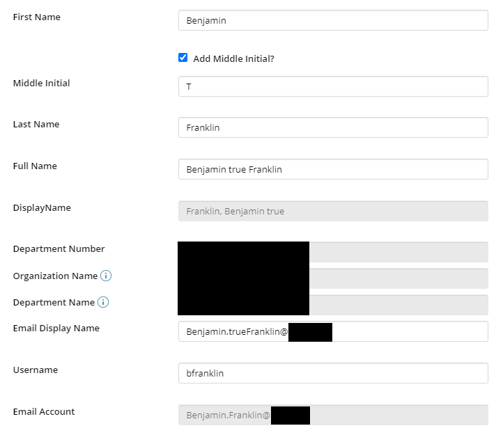 Something I've been wanting to do is create a "middle initial" field within my user creation template. I tried to create a checkbox that would target the "initials" variable and put a period before the single character, and a trailing whitespace afterward.