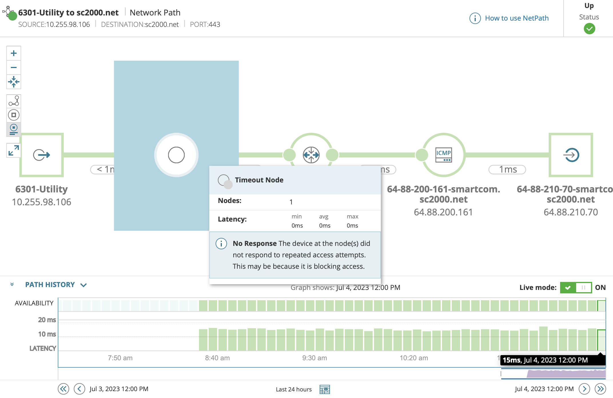 I'm having an issue with NetPath not showing the identity of one of our internal routers.